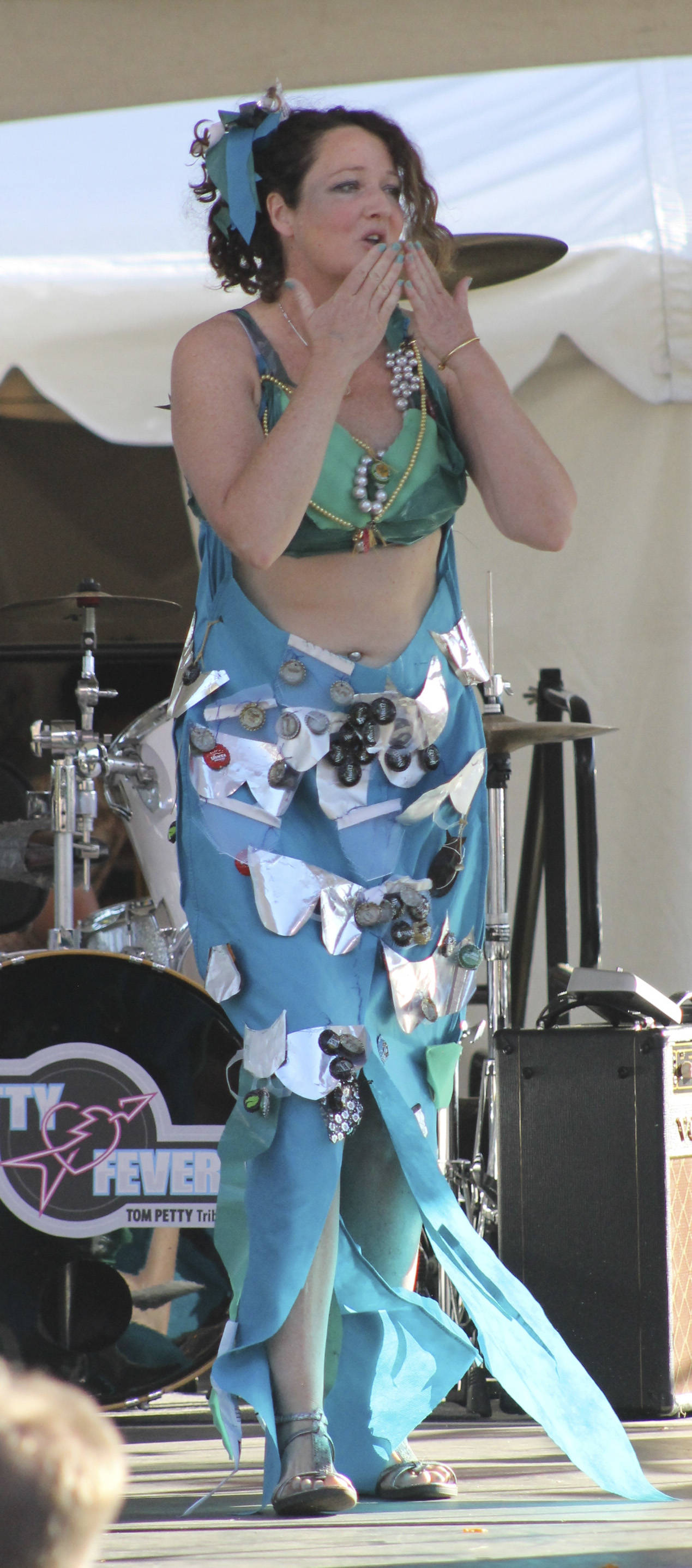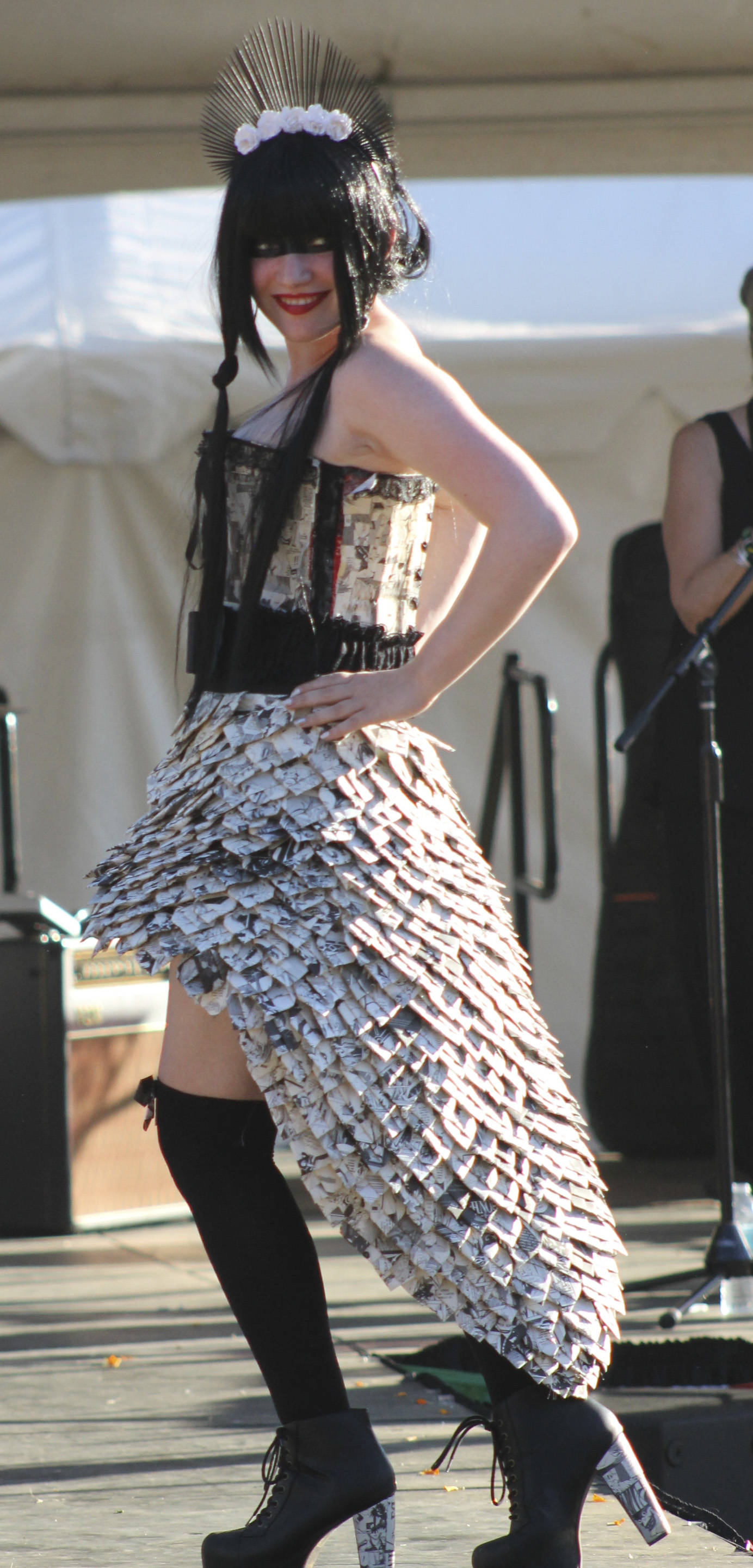The idea began as a fun, educational tool highlighting the sheer mass of items clogging landfills. Hansen invited people to create outfits from trash and show them off at the fair. The community responded excitedly. Even little items like boat tickets add up, as one woman displayed when she created a “ferry” dress.