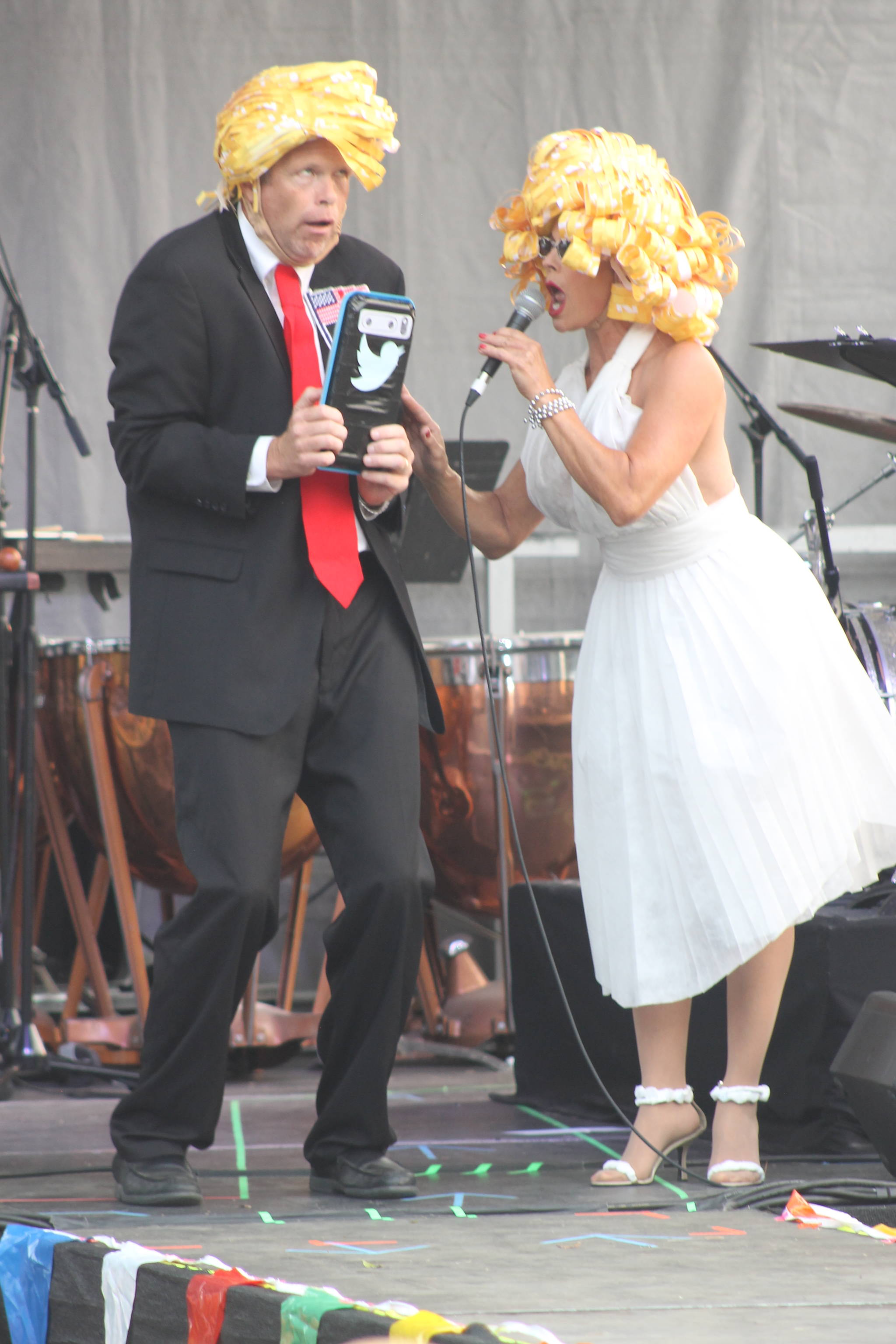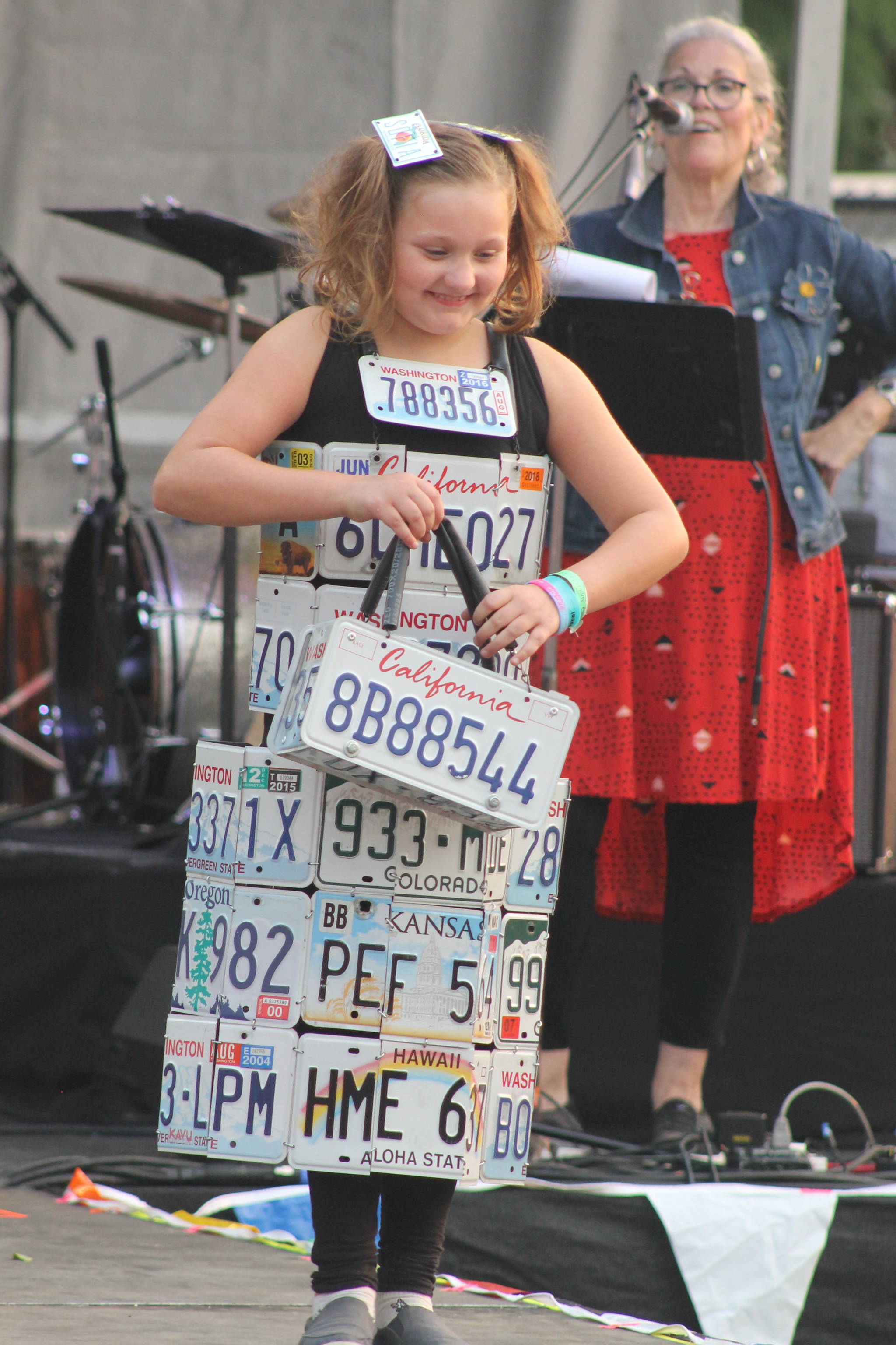 “We have a lot of sizzling styles this year,” Lehman began. Mermaids, robots, knights, flapper girls, Donald Trump and Marilyn Monroe all made appearances, strutting their wearable recycled trash starting at 6:30 p.m., in front of a packed audience surrounding the main fair stage. The show has always been a popular fair tradition, organized by Francie Hansen. Her goal was to inspire people’s creativity while calling attention to the importance of recycling and reusing trash. The event has often been a family affair, with participants age ranging from 4 to 80 years old, including mother and daughter teams, sisters fathers and brothers.