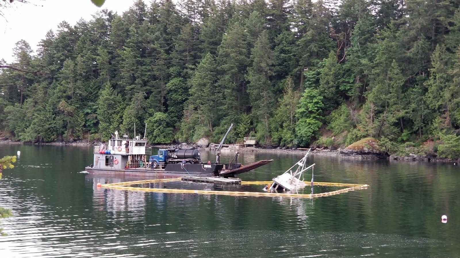 Once the pollution source is controlled, work will begin to develop a plan for removing the burned hull of the vessel and returning the waters of Judd Cove to their natural state.