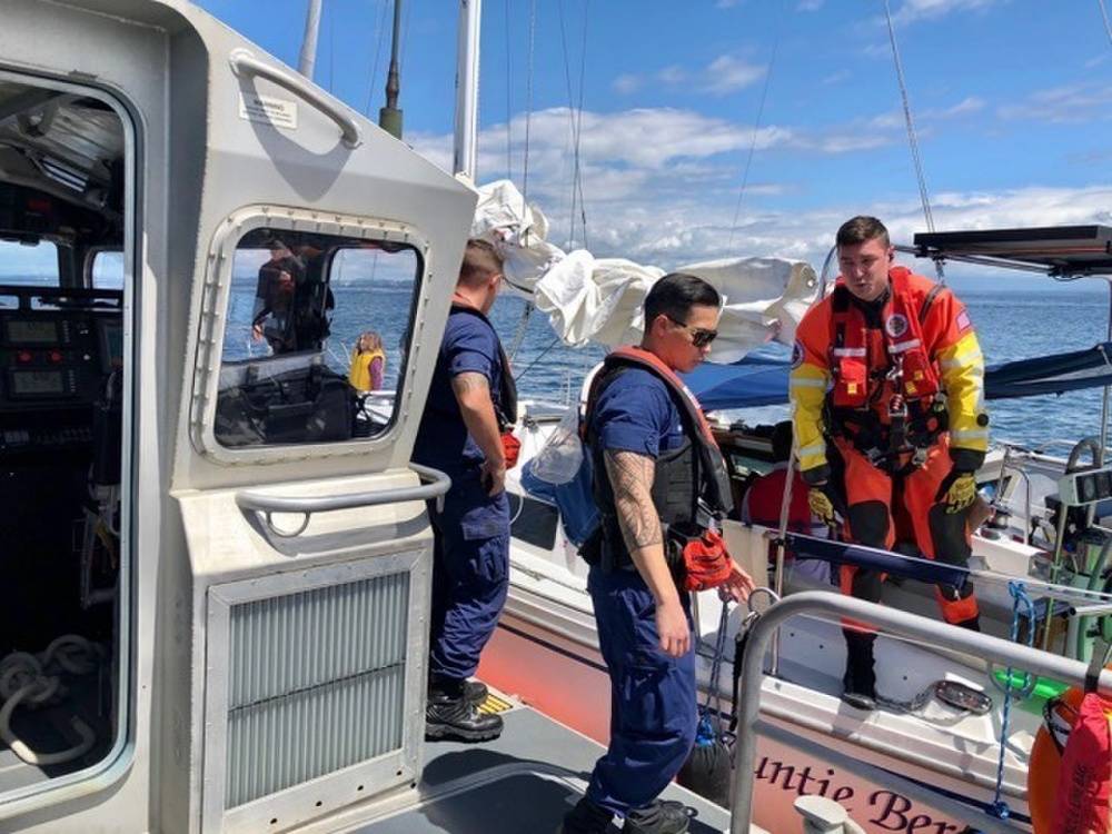 On Monday, July 2, a Coast Guard Air Station Port Angeles aircrew, aboard a helicopter, medically evacuated a 70-year-old woman from a sailing vessel that ran aground near Sucia Island in the vicinity of Oak Harbor.