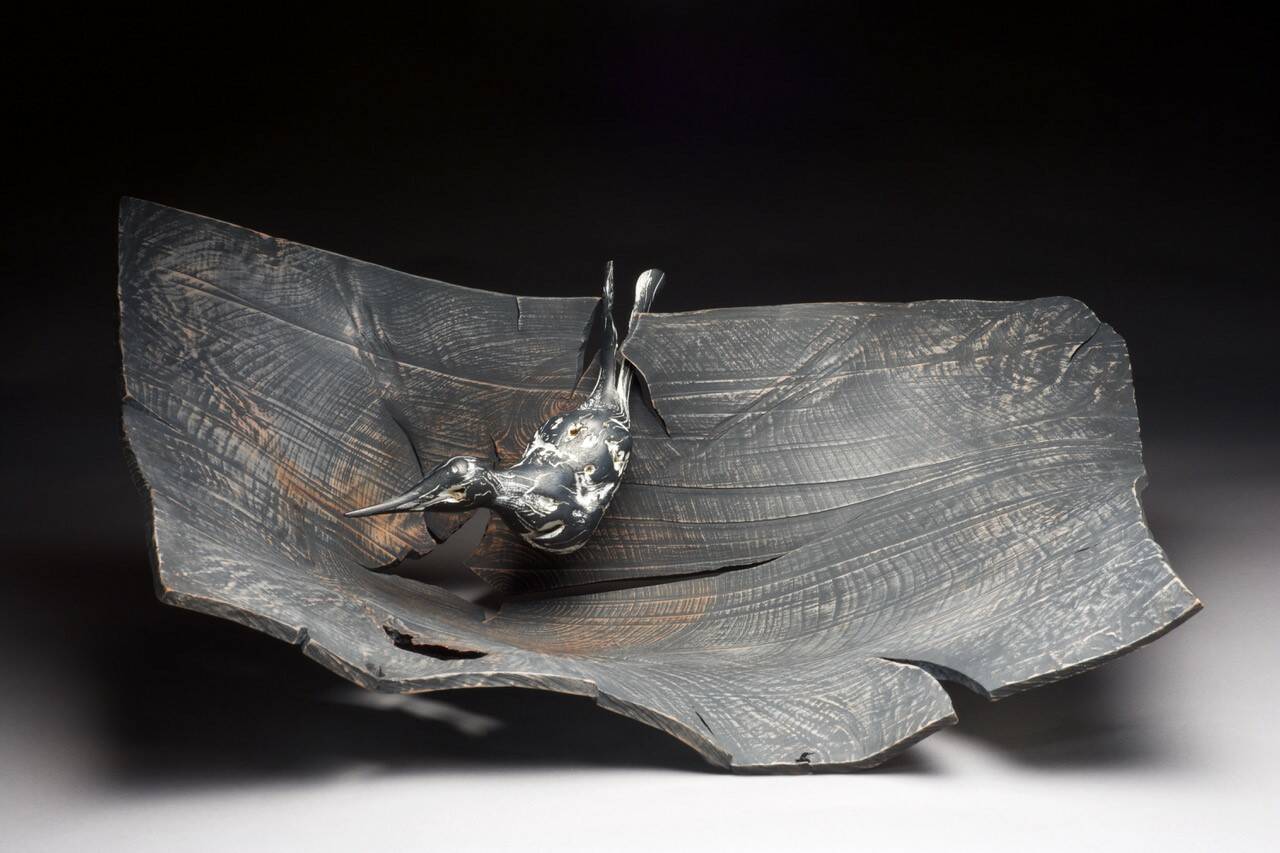 Lopez Island Artist, Michael Peterson selected his piece, Habitat IV, for this year’s AR show. Peterson says his work is grounded in the natural world, which is evident in this sculpture, depicting a bird at rest on a slab of bark. Peterson says, “My sculptural work evolves from the process of making and develops its own logic. Habitat IV draws on the arrangement of an abstract vessel and carved bird form.”