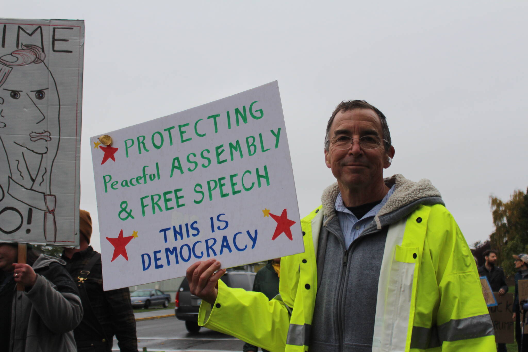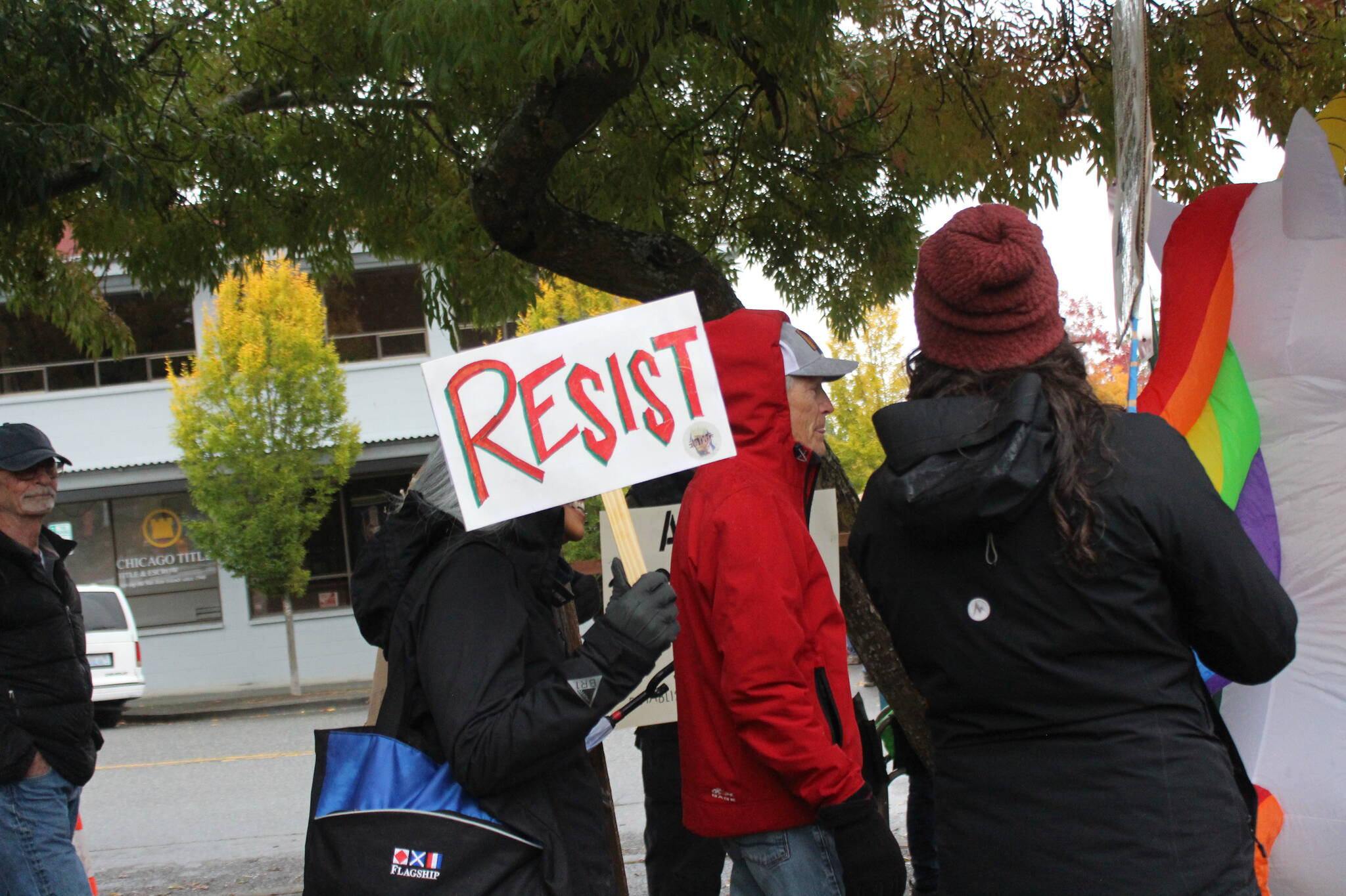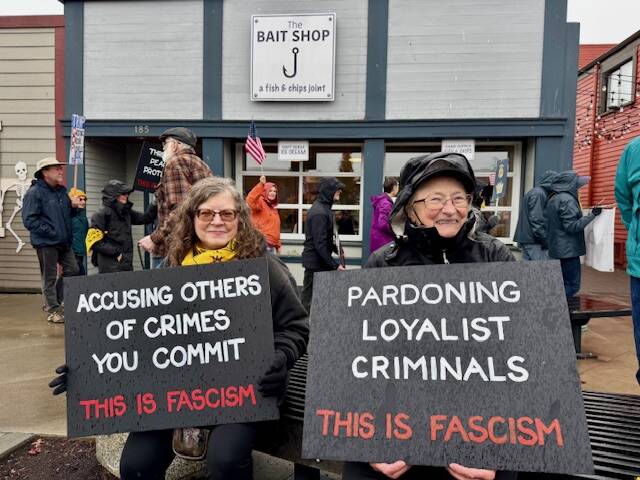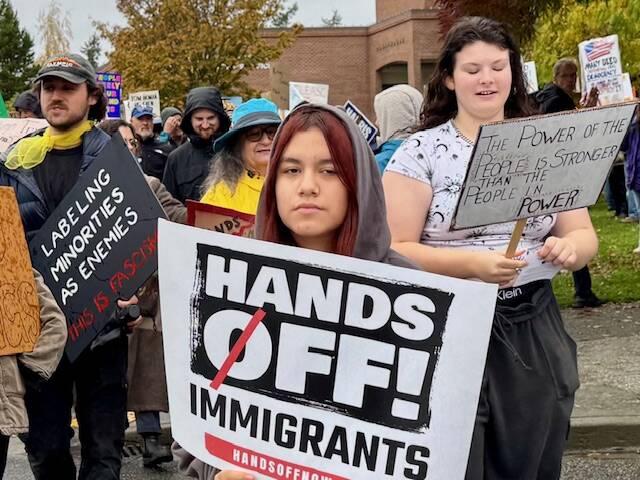 The rally was one of several hosted by Indivisible San Juan Islands, and was part of a national protest that drew seven million people across the country. Rain clearly did not dampen the spirits of the crowd. Participation was one of the highest, consisting of every age group, and some brought their dogs.