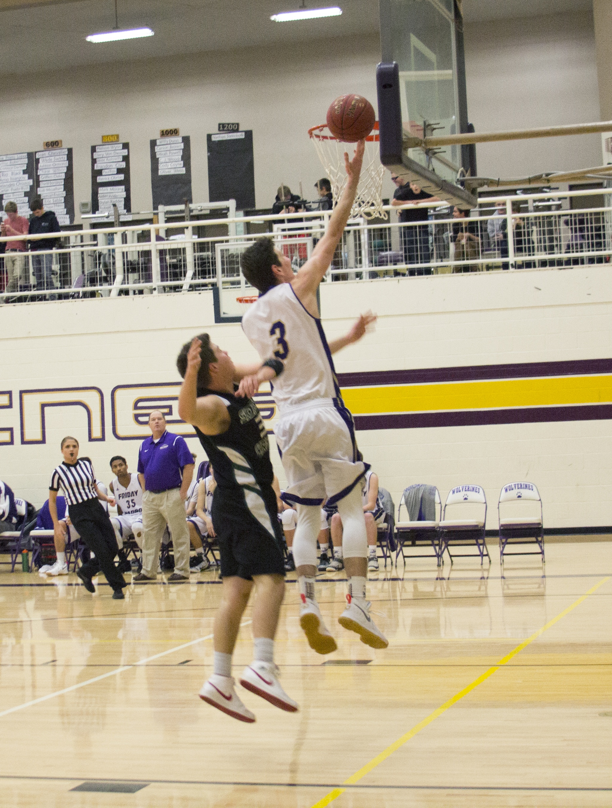 Staff photo/Greg Sellentin                                Senior Eli Cooper-West scoring on a breakaway layup.