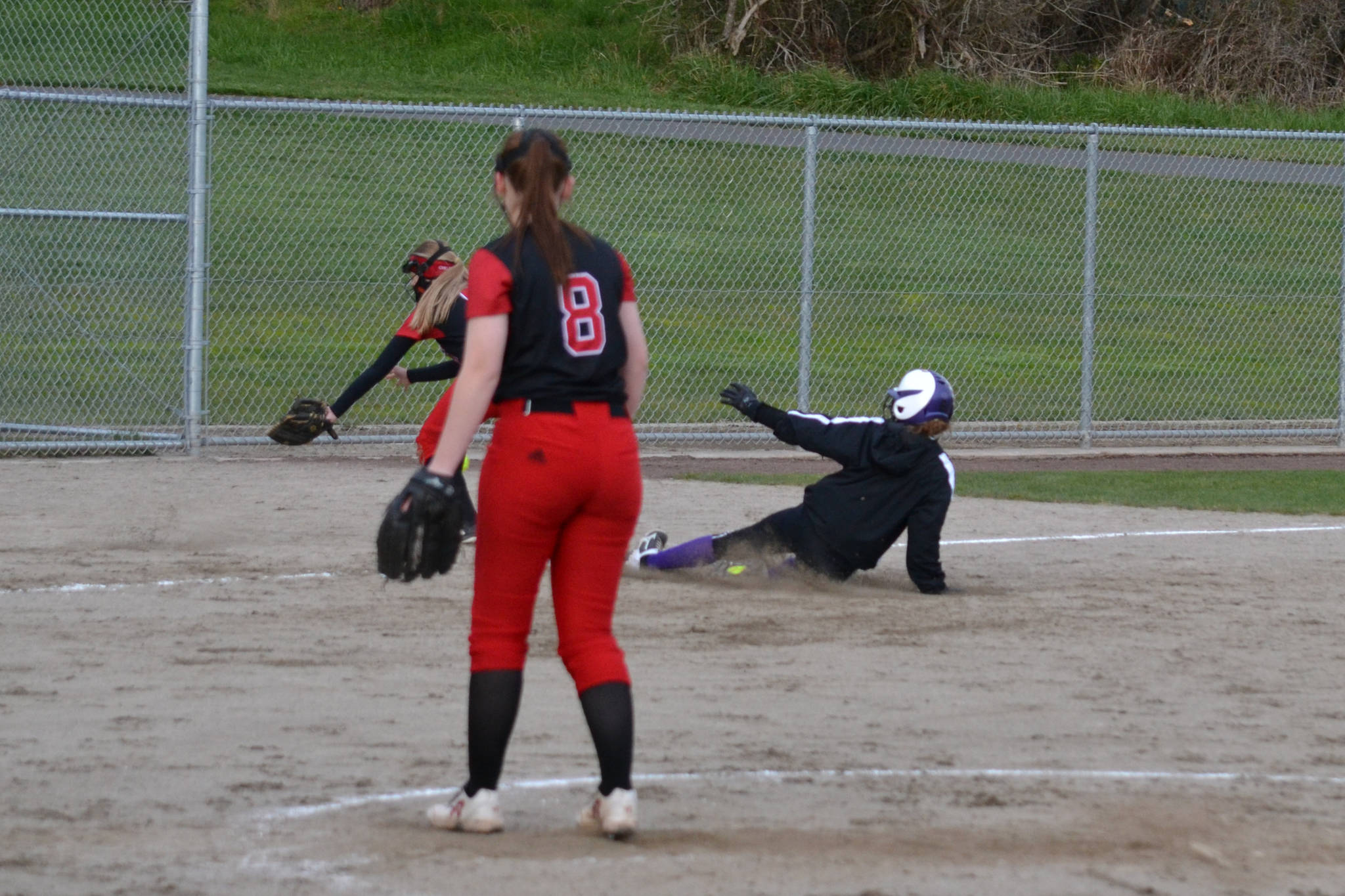 Junior Olivia Germain slides into third base against Coupeville on March 19. The girls lost 8-3 at home against the Wolves. (Jennifer Ayers/contributed photo)