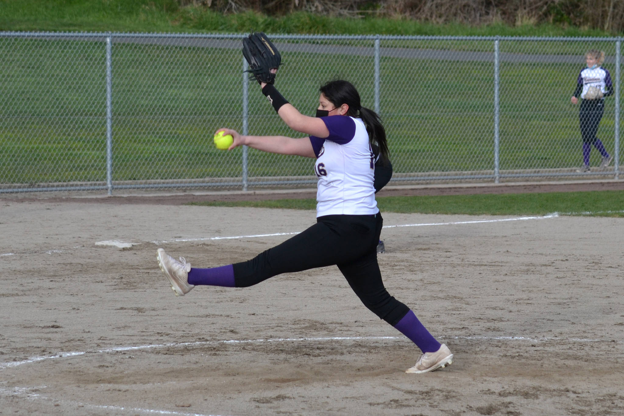 Sophmore Yaritza Plaza pitches against Coupeville on March 19. The girls lost 8-3 at home against the Wolves. (Jennifer Ayers/contributed photo)