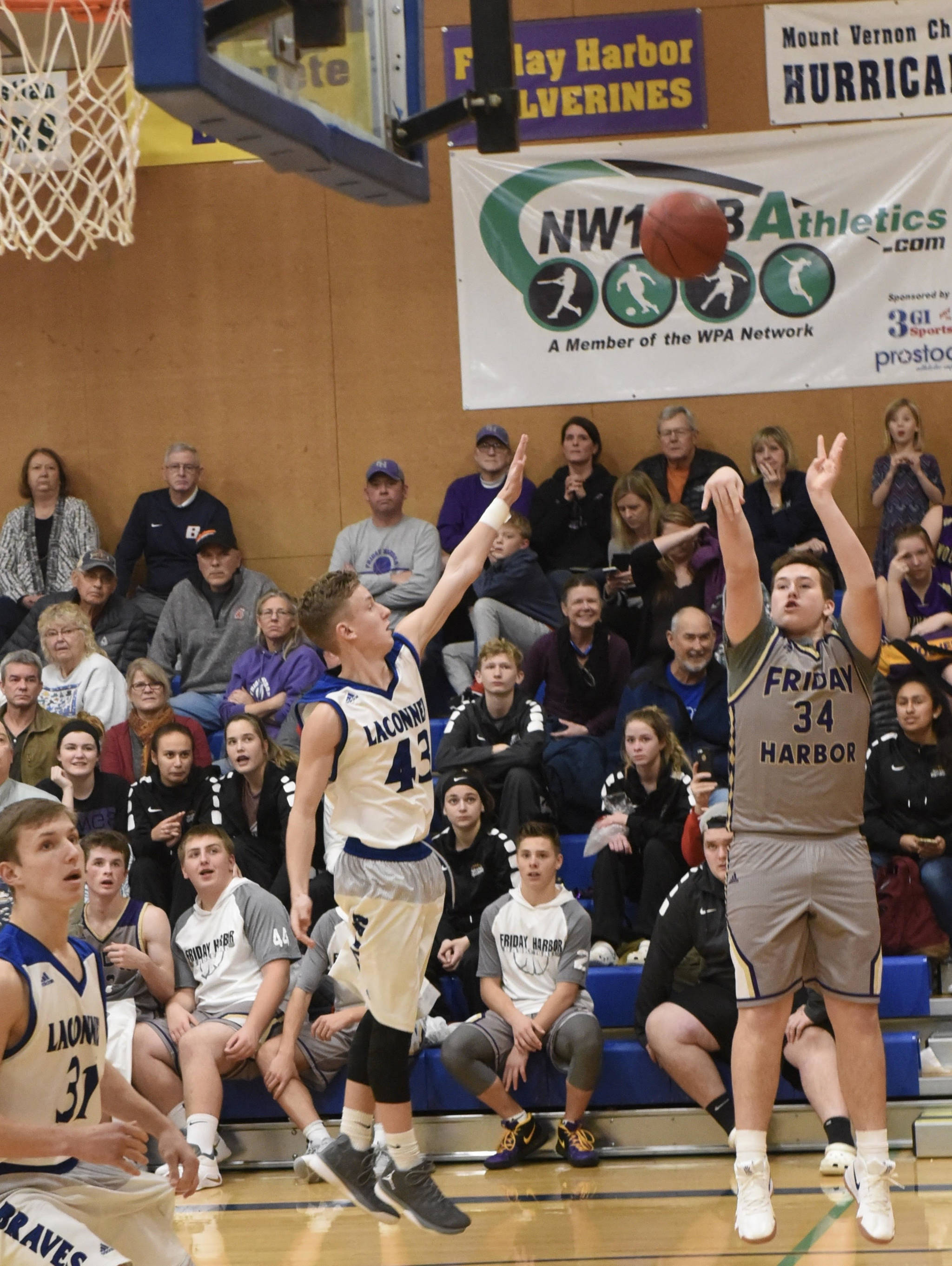 The Friday Harbor Wolverines basketball teams played their first league games against the La Conner Braves on Dec. 18, off of the island. The lady Wolverines gave it their all but lost to the Braves, 50-33. The Wolverine boys varsity came away with a well-fought win with a score of 65-46.