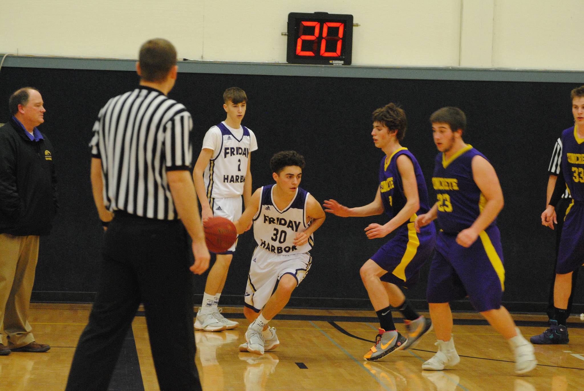On Tuesday, Jan. 30, the Friday Harbor Wolverines overtook the Orcas Vikings in overtime for the win with the score 55-50.
