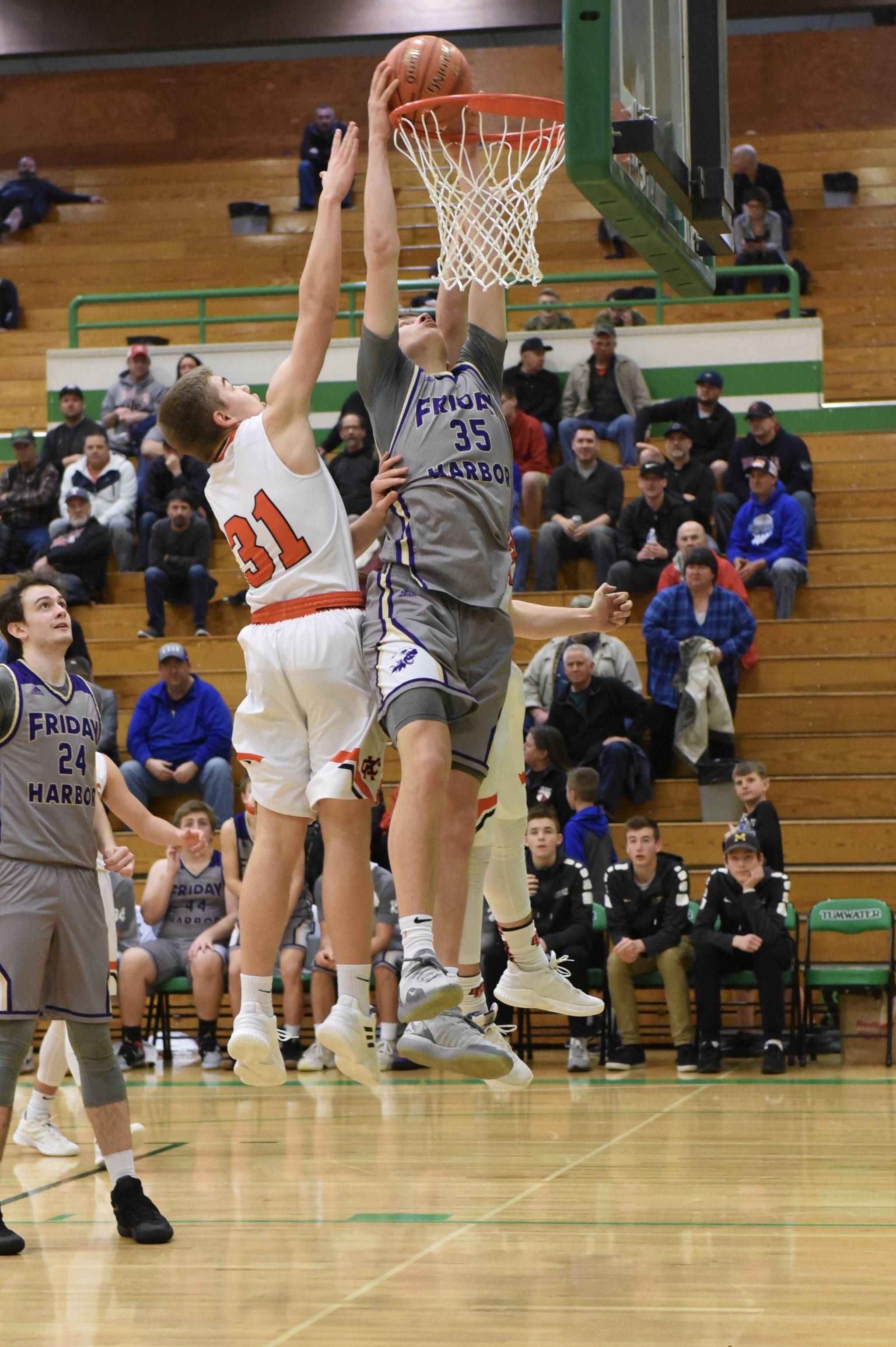 Kalama High School Chinooks boys basketball team undid a chance for Friday Harbor Wolverines to continue onto the state playoffs.