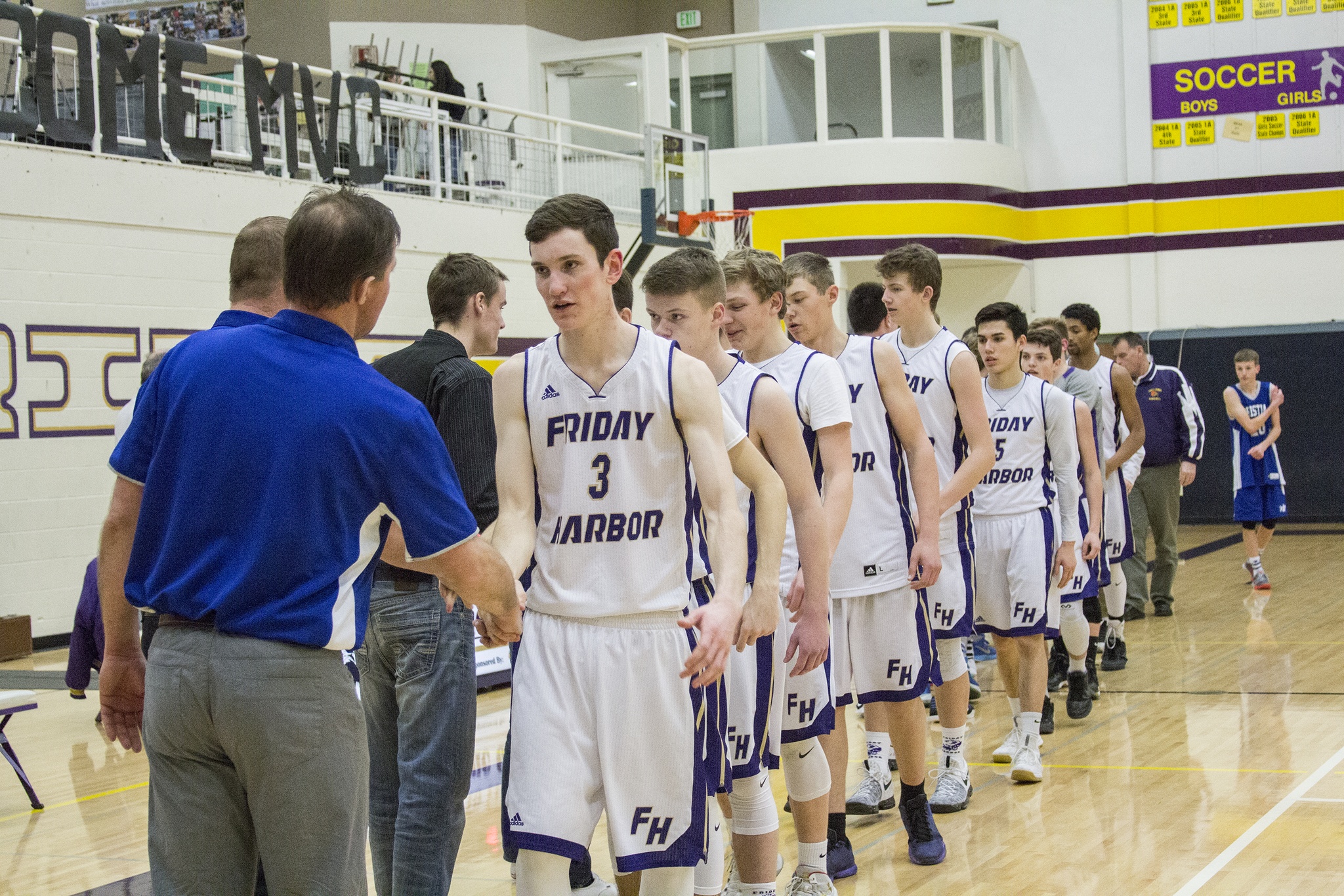 The second half started as the first half ended, with Friday Harbor maintaining momentum. Marshall Clark retrieved a hard fought rebound and scored taking a foul in the process and Isaac Mayer scored next. Friday Harbor slowly pulled away, playing strong defense and held Mount Vernon to only seven points in the final quarter. The Wolverines won the game with a comfortable margin of 48-33.