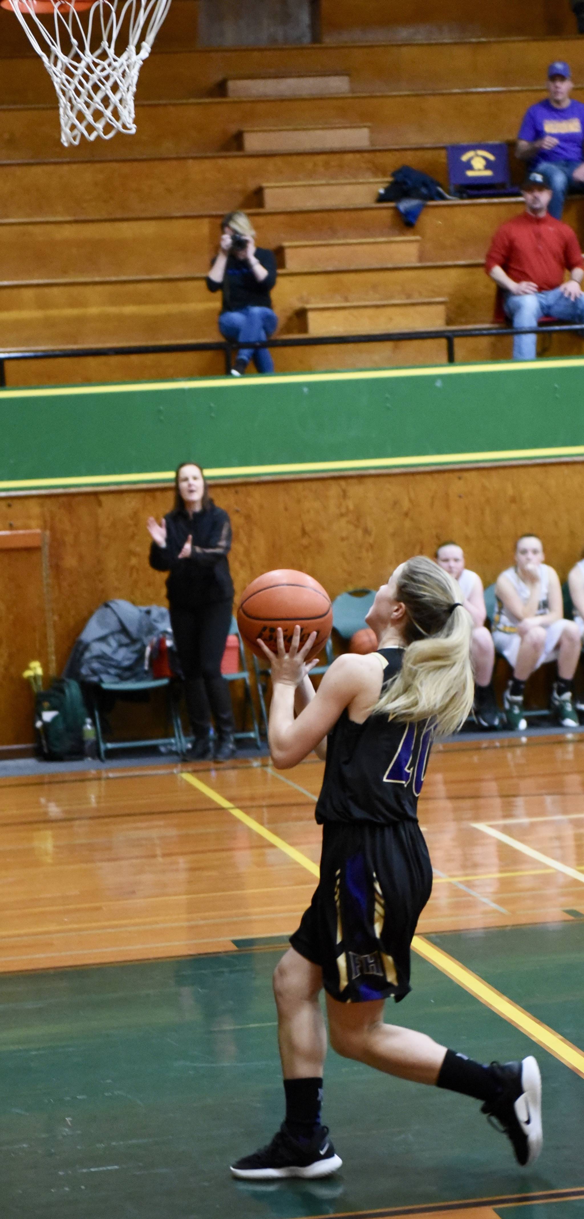 After the half and into the third quarter, the Wolverines “got on their game” and brought their score closer to the Loggers with the scoreboard at 32-35. The two teams traded baskets in the fourth quarter with the score 37-39 with five minutes remaining, in the next two minutes the Wolverines had a strong scoring drive taking the lead over the Loggers. At thee minutes on the time clock, the Wolverines were leading with a score of 46-41.